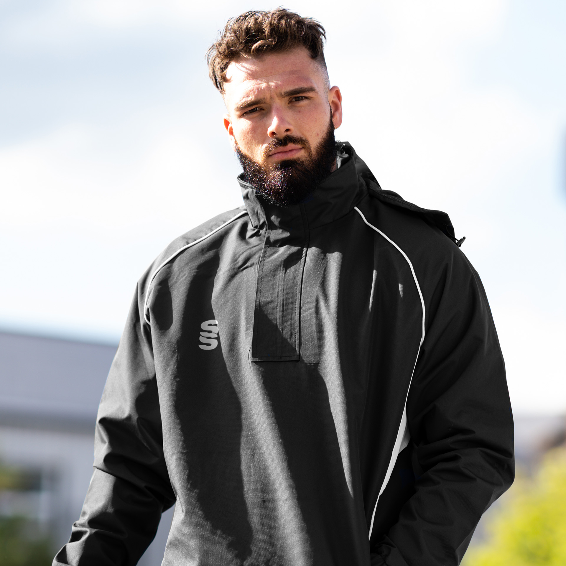 The Dual Curve 1/4 Zip Rain Jacket is made from polyester with a microfibre mesh lining and wind resistant outer coating, making it fully waterproof. It features a concealed hood with toggle, and a Velcro fastener. Front zip pockets with adjustable toggles and bungee cord at the hem, and a quarter zip fastening with Velcro storm flap. A contrast flat-locking goes over the shoulders. 2.5cm Elasticated cuffs make sure they fit snugly to keep breeze out. To finish, our SS logo is printed onto the right side chest and your colour of choice.